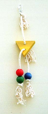 Zabawka dla dużej papugi wykonana z drewnianych klocków i sznurka z czystej bawełny.