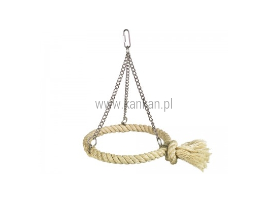 Huśtawka dla papug z sizalowego koła zawieszonego poziomo na trzech łańcuszkach.