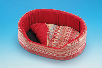 Legowisko ze stabilnej gąbki obszytej tkaniną z mikrofazy z dwustronną wyjmowaną poduszką wypełnioną watoliną.