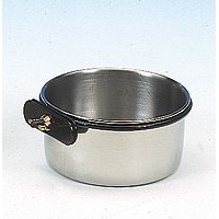 Miska ze stali nierdzewnej w obręczy do przykręcenia na kracie klatki.