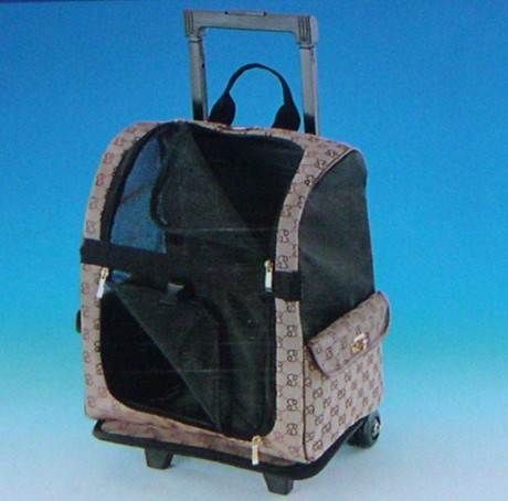 Torba na kółkach beżowa z nadrukiem. Uchwyt wyciągany na trzy wysokości. Można ją też nosić jak plecak. Ma tegulowane paski. Z trzech stron ma otwory wentylacyjne natomiast otwierana jest z przodu: dolna część i górna. Wewnątrz karabińczyk do przypięcia zwierzaka po bokach dwie kieszonki. Łatwa do utrzymania w czystości.