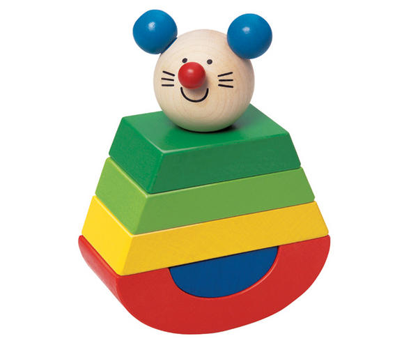 Obojętnie jak się myszkę zloży - zawsze ma dobrą figurę. Tajemnica tkwi w śrubie na którą mali monterzy dowolnie nakręcają kolorowe klocki.