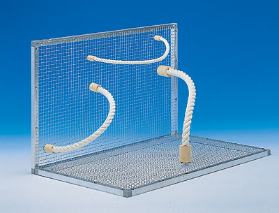 Dzięki temu lina ta może być dowolnie mocowana do ścianek klatki czy woliery