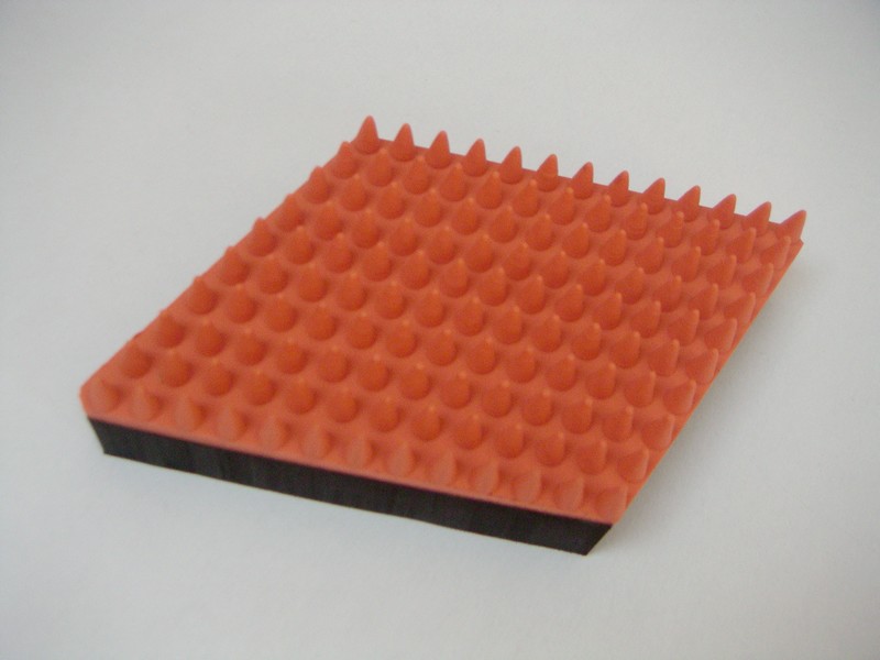Zgrzebło z pełnej gumy na sztywnej wysokiej podkładce w kształcie trapezu.
